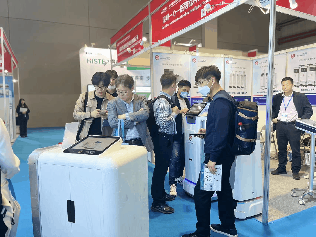 在展会现场,一心一医团队通过专业的现场讲解、答疑和产品演示给来访观众展示着智能化医疗设备的魅力。