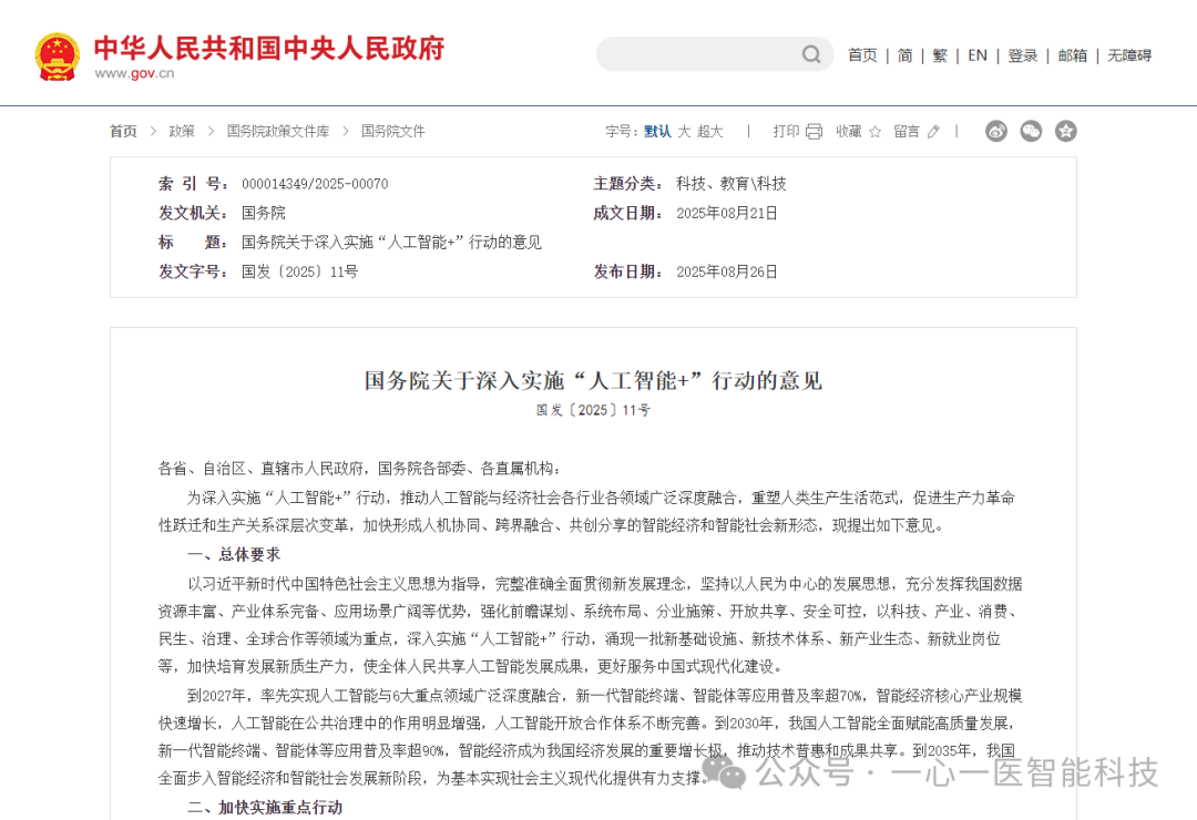 国务院近日印发《关于深入实施“人工智能+”行动的意见》(以下简称《意见》),明确将“人工智能+”全面融入经济社会各领域,其中 “人工智能 + 民生福祉”“人工智能 + 产业发展”等重点行动,为医疗健康领域的智能化升级指明了方向。而医用物流机器人作为医疗供应链的“智能搬运工”,正迎来政策红利驱动下的爆发式发展机遇。