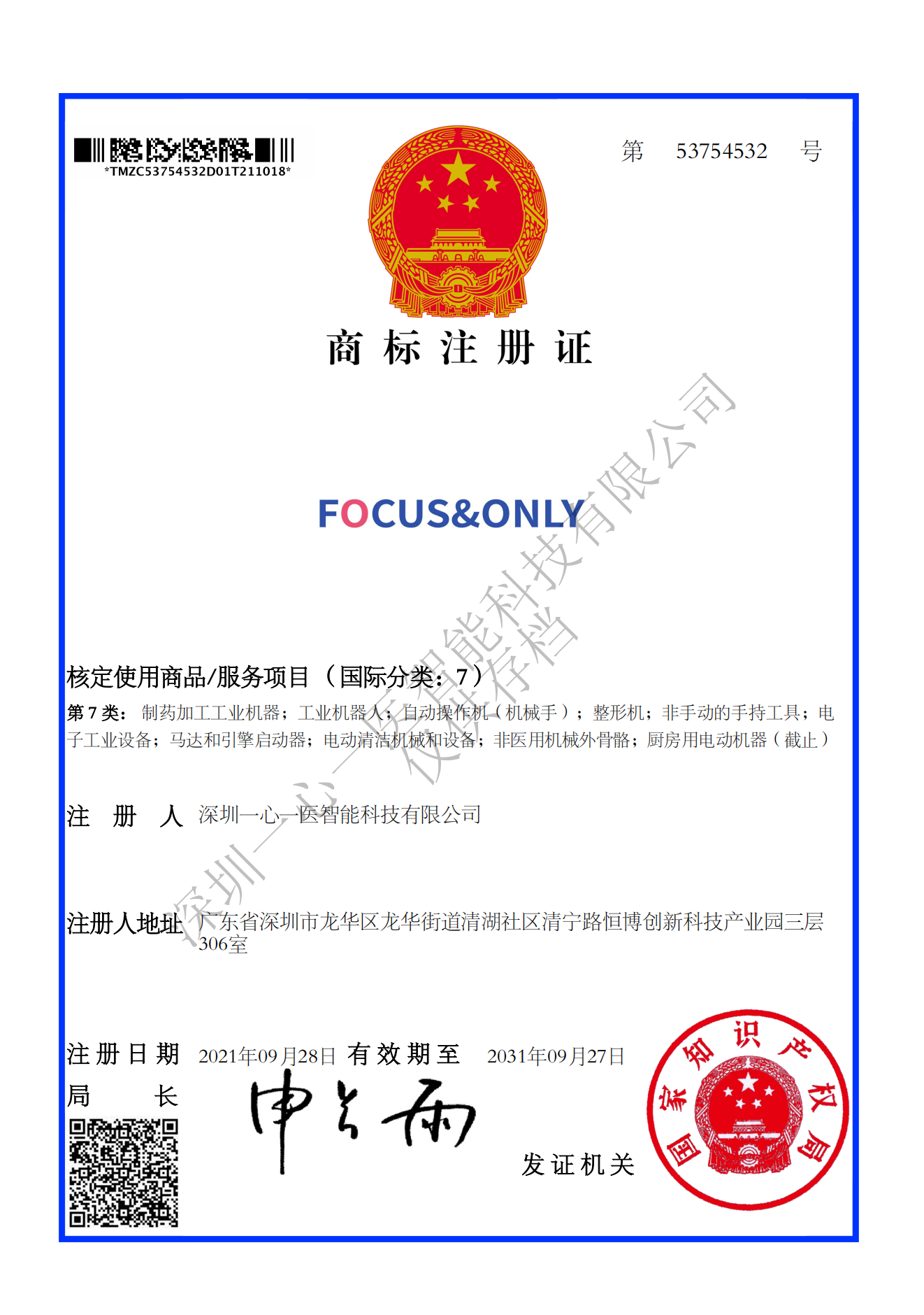 商标注册证10类